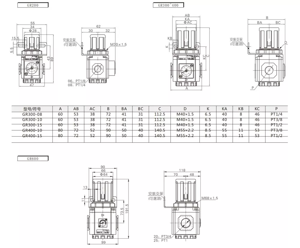GC=GF+GR+GL (फिल्टर + वायवीय नियामक + लुब्रिकेटर)