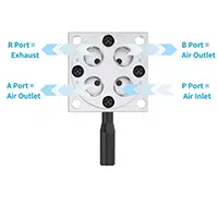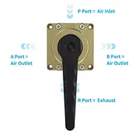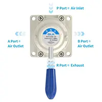 जब 01 गियरमा स्विच गरियो, एक निकास पोर्ट जारी हावा, बी निकाल पोर्ट भेन्ट्स, र सिलिन्डर रेस्टर्ज गर्दछ।