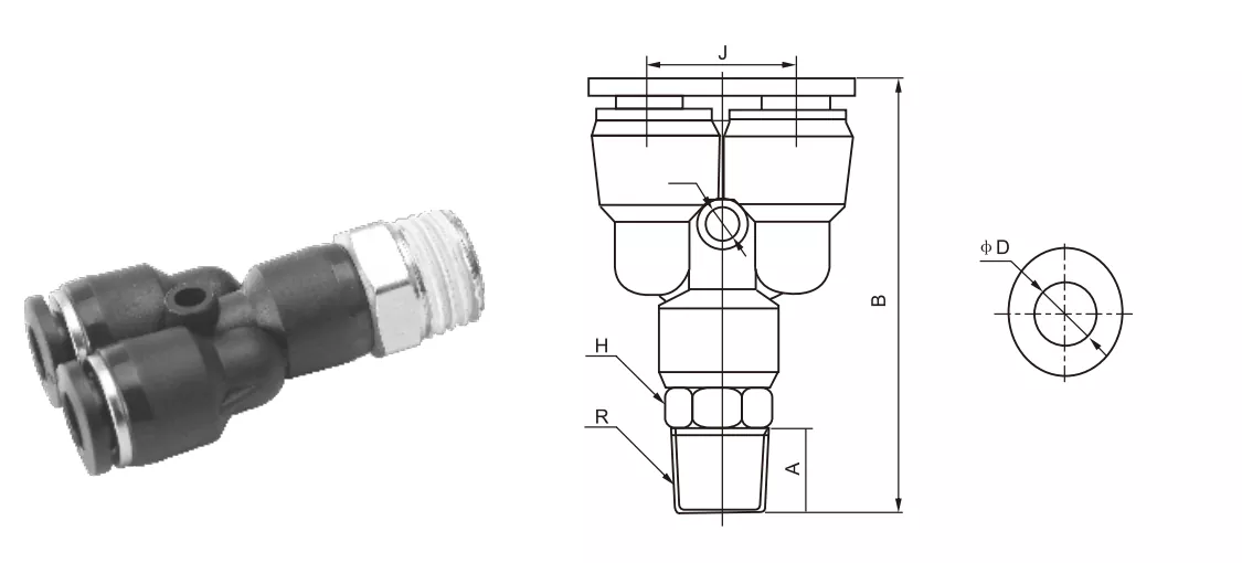 पीएक्स Y प्रकार पुश-मा ट्यूब फिटिंग पुश-टु-जी-जडान डिजाइन। र मुख्य एयर मार्ग मार्ग सीधा जडान गरिएको छ। कस्ता ग्यासले णात्मक प्रणालीहरूमा ग्यास विभाजन वा सहायक पाइपलाइनहरूको लागि प्रयोग गरीन्छ।